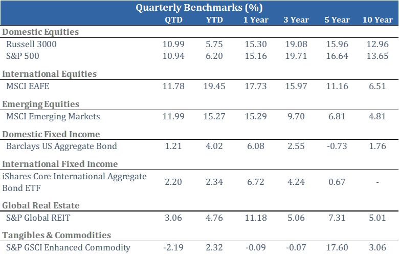 Here is a summary of investment performance across all major categories in our client portfolios: